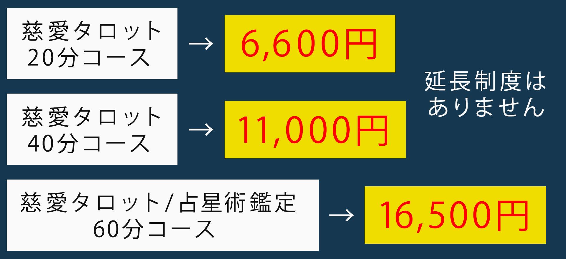 各鑑定メニューごとに表示された金額(税込表記)